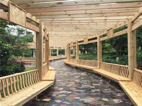 安装环节需注重基础稳固性。地面需平整硬化,若为软土则需浇筑混凝土基座,立柱埋入深度不少于0.5米,并填充水泥加固。立柱间距应均匀,误差不超过2厘米,横梁与立柱连接处需使用不锈钢螺栓或防腐木专用连接件,避免钉子易松动的问题。安装后需检查结构垂直度与水平度,用木楔调整偏差。最后,在木材表面涂刷两遍户外防腐木油,增强防潮、防裂性能,延长使用寿命。